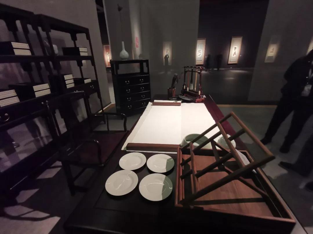 尤其值得一提的是,為了讓觀眾產生近似于身臨其境的現(xiàn)場感,展覽專門在展廳的中央設計、搭建了畫室模擬空間。天地儒風公司無償贊助使用了價值不菲的古典家具。模擬一種與展覽整體氛圍相符合的創(chuàng)作場景,增強展覽的趣味性,吸引觀眾更深入的探索大師的藝術世界。